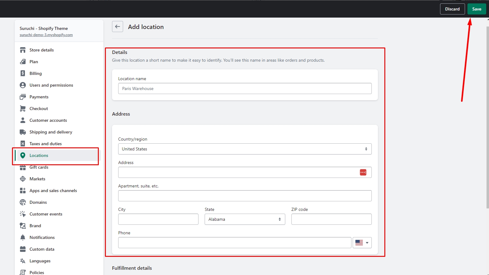 If you want the inventory at this location to be available for online purchases, then select Fulfill online orders from this location.
