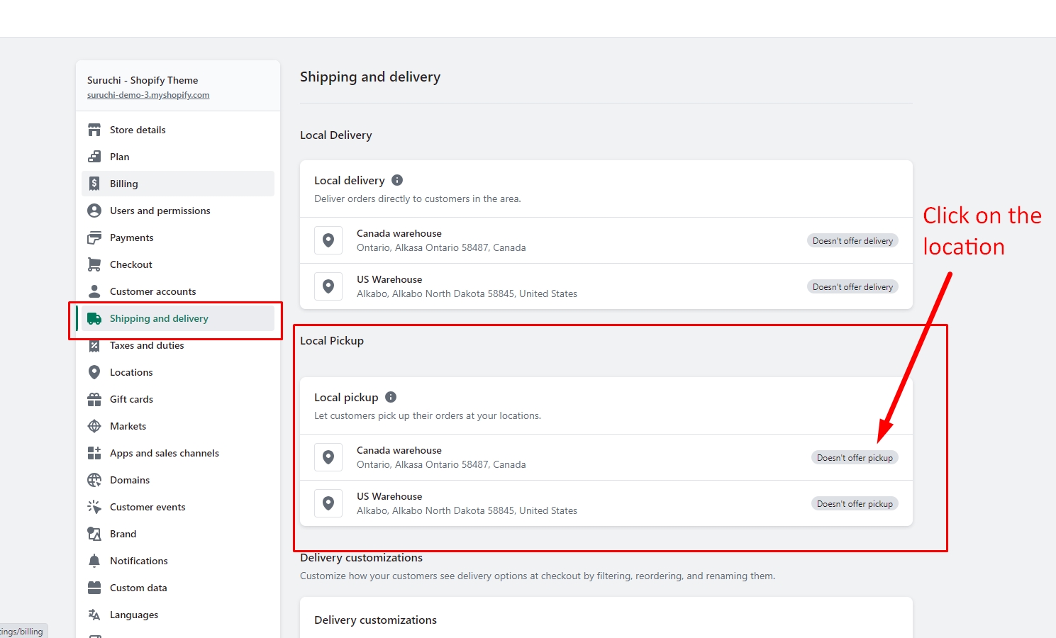 Check the locations that stock the product, and uncheck the locations that don’t stock the product.