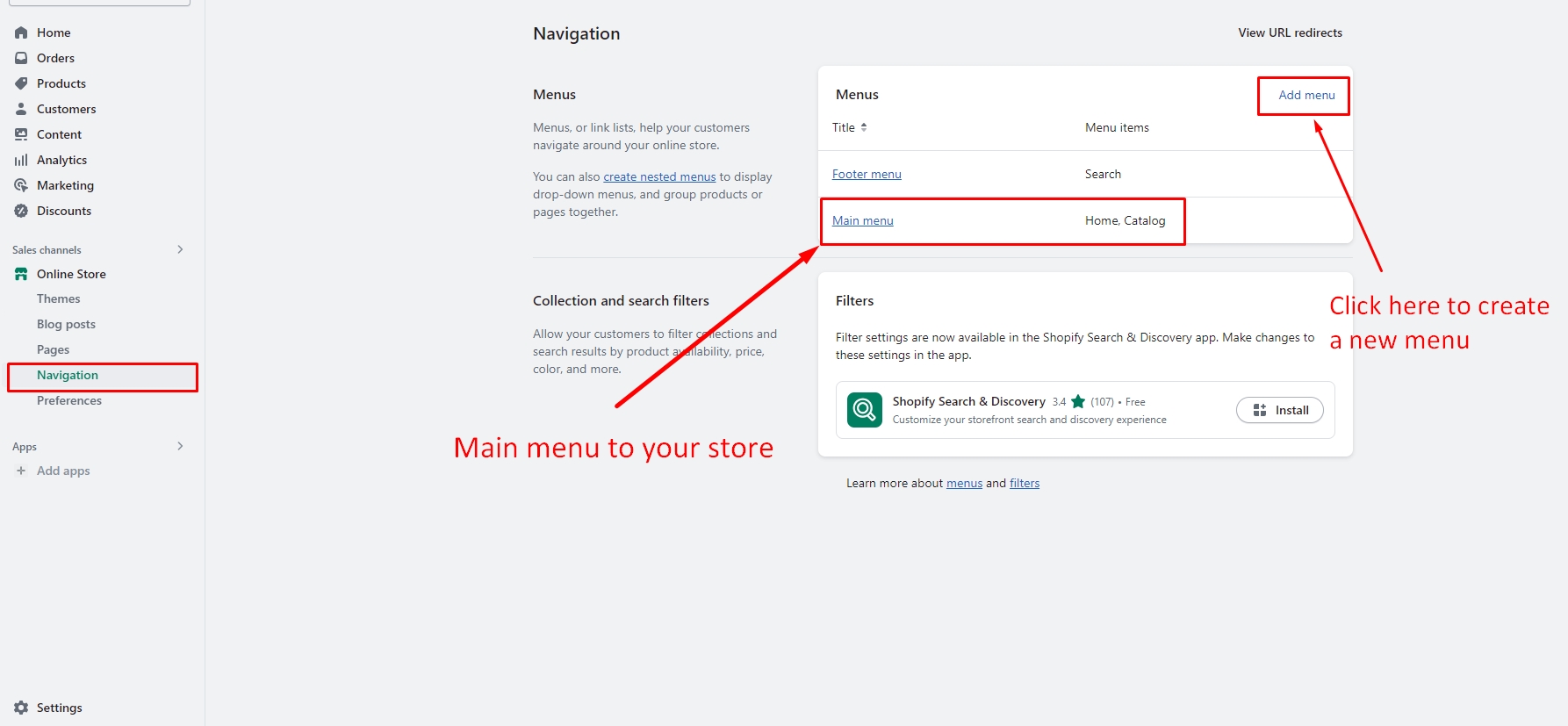 First, go to the Online store > Navigation