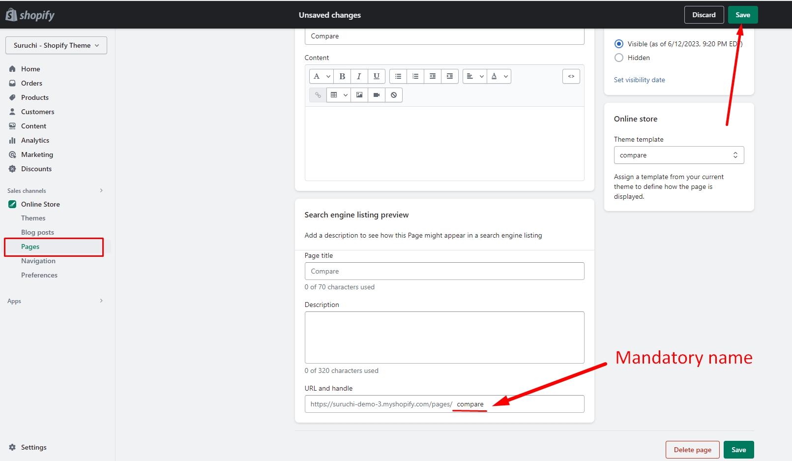 From your Shopify admin, go to Online Store > Pages.