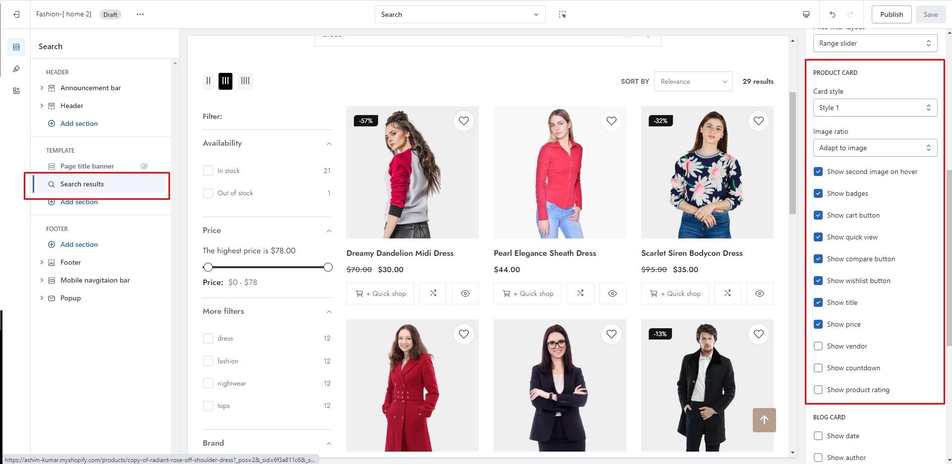 Predictive search is a feature on Shopify that suggests products, pages, blog posts, collections, and query results as you type into the search bar. It uses the words and phrases from your product catalog, as well as from past customer searches, to generate suggestions that are relevant to what you're looking for.