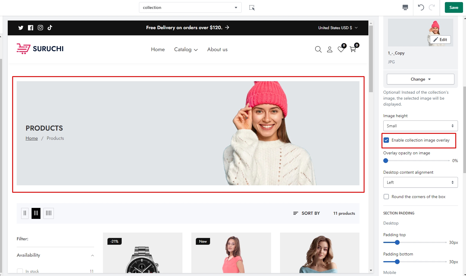 Optional! Instead of the collection's image, the selected image will be displayed.
