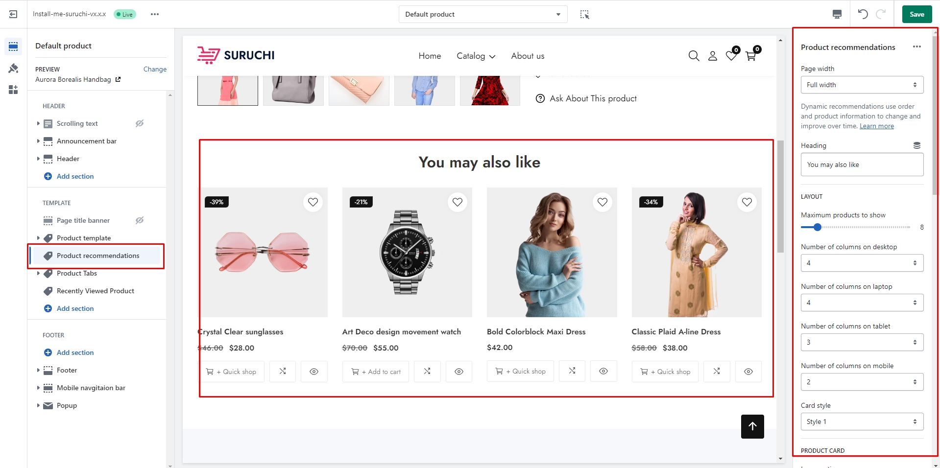 Related product recommendations are automatically generated for each product in your store. When you're customizing recommendations for a product in the Search & Discovery app, you can see a preview of the automatically generated recommendations. [Learn more]