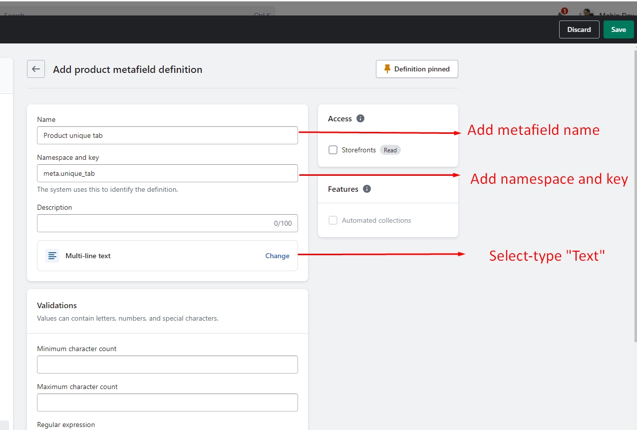 - Bold texts are mandatory, just the namespace & key value will be changed following your metafield.