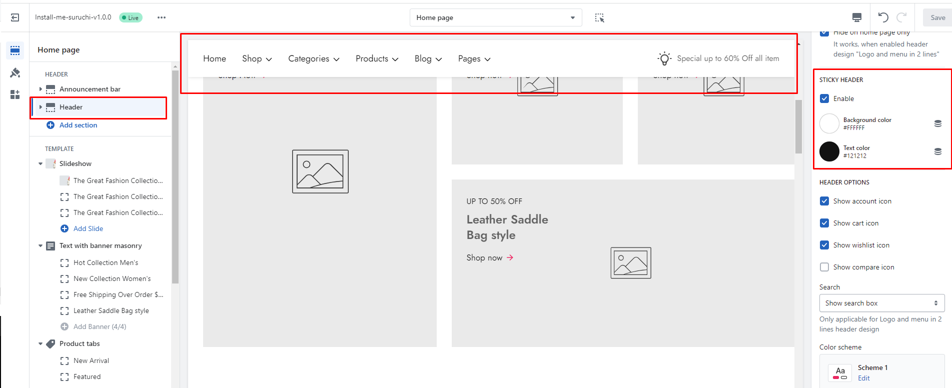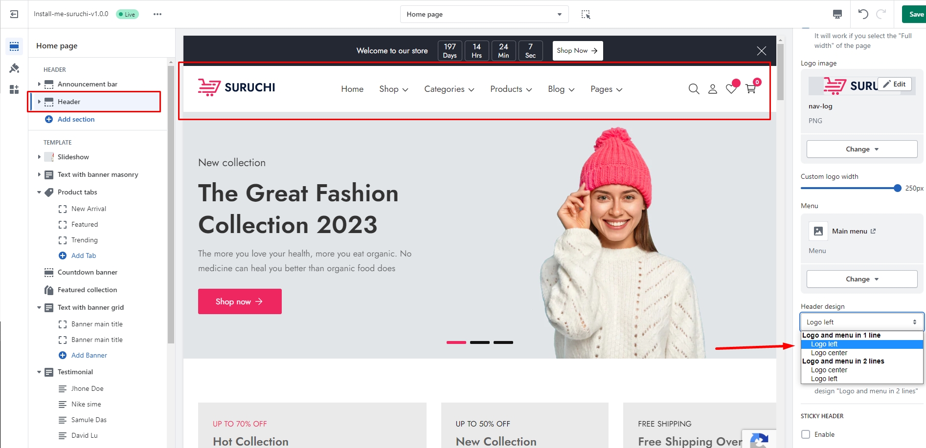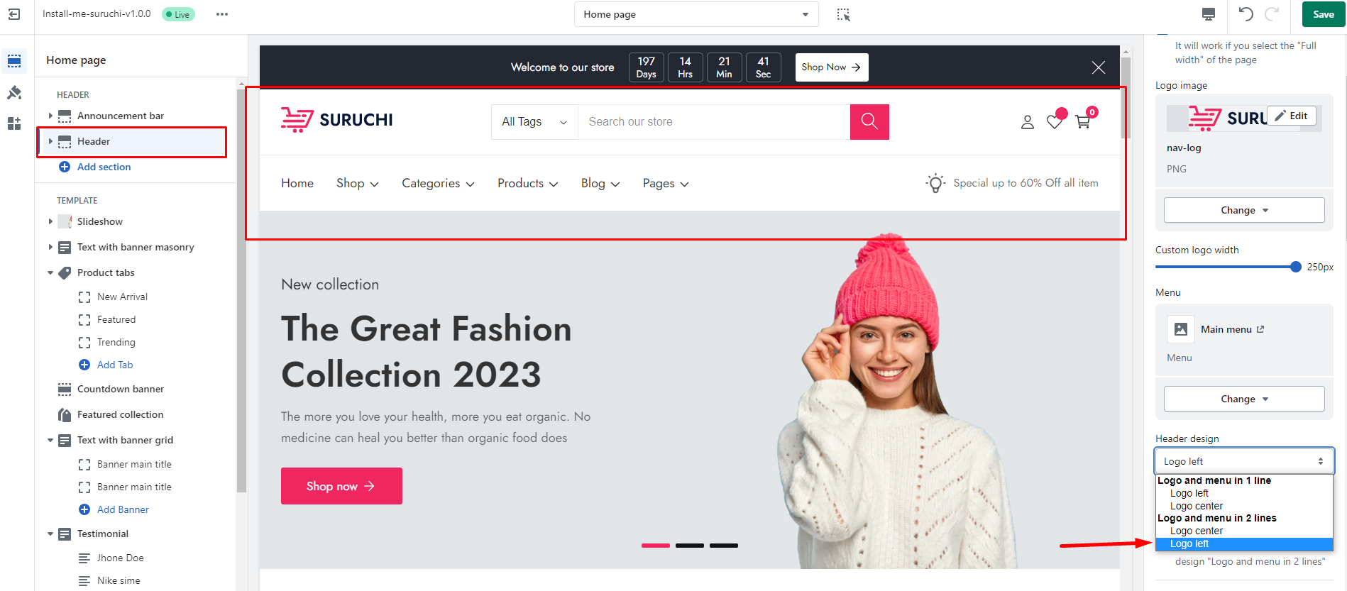 Search (Only applicable for Logo and menu in 2 lines header design)