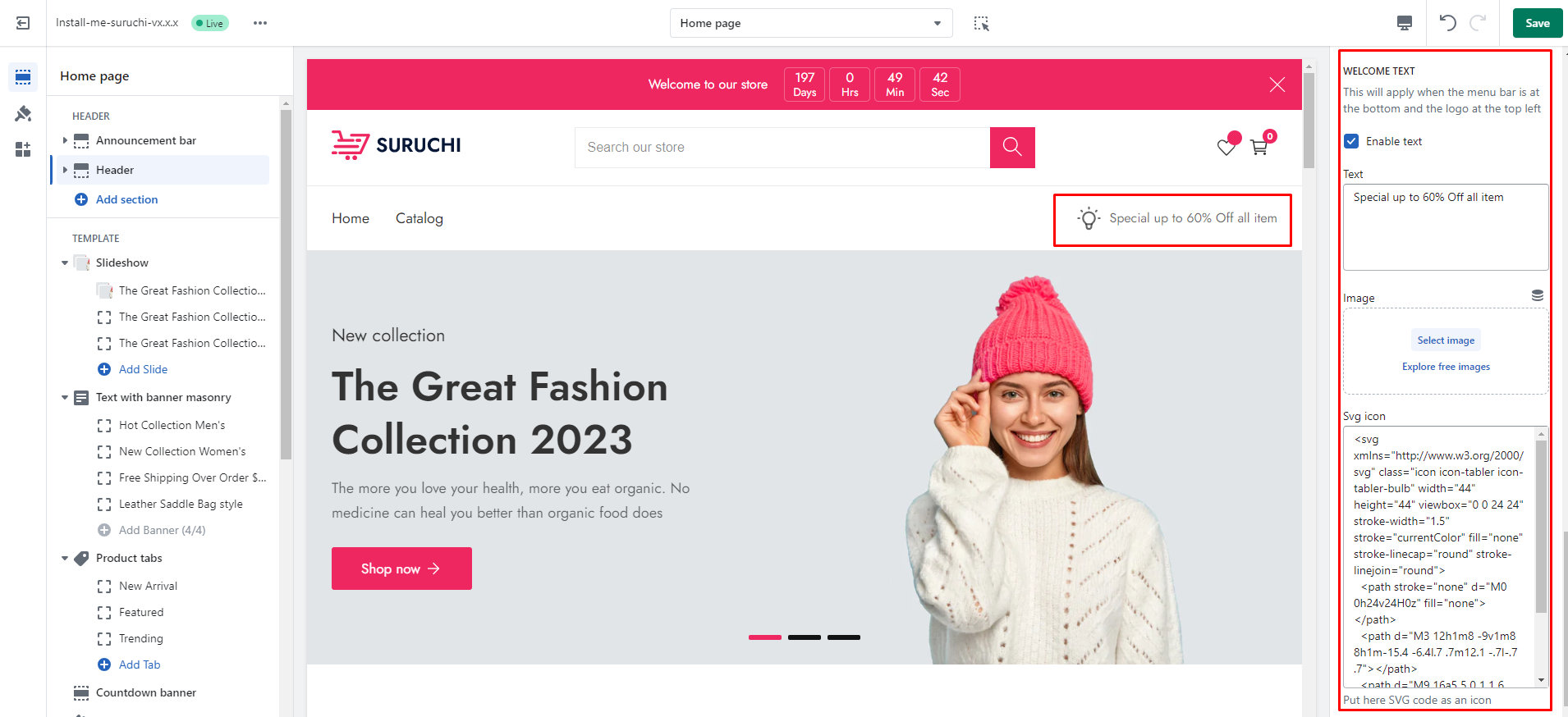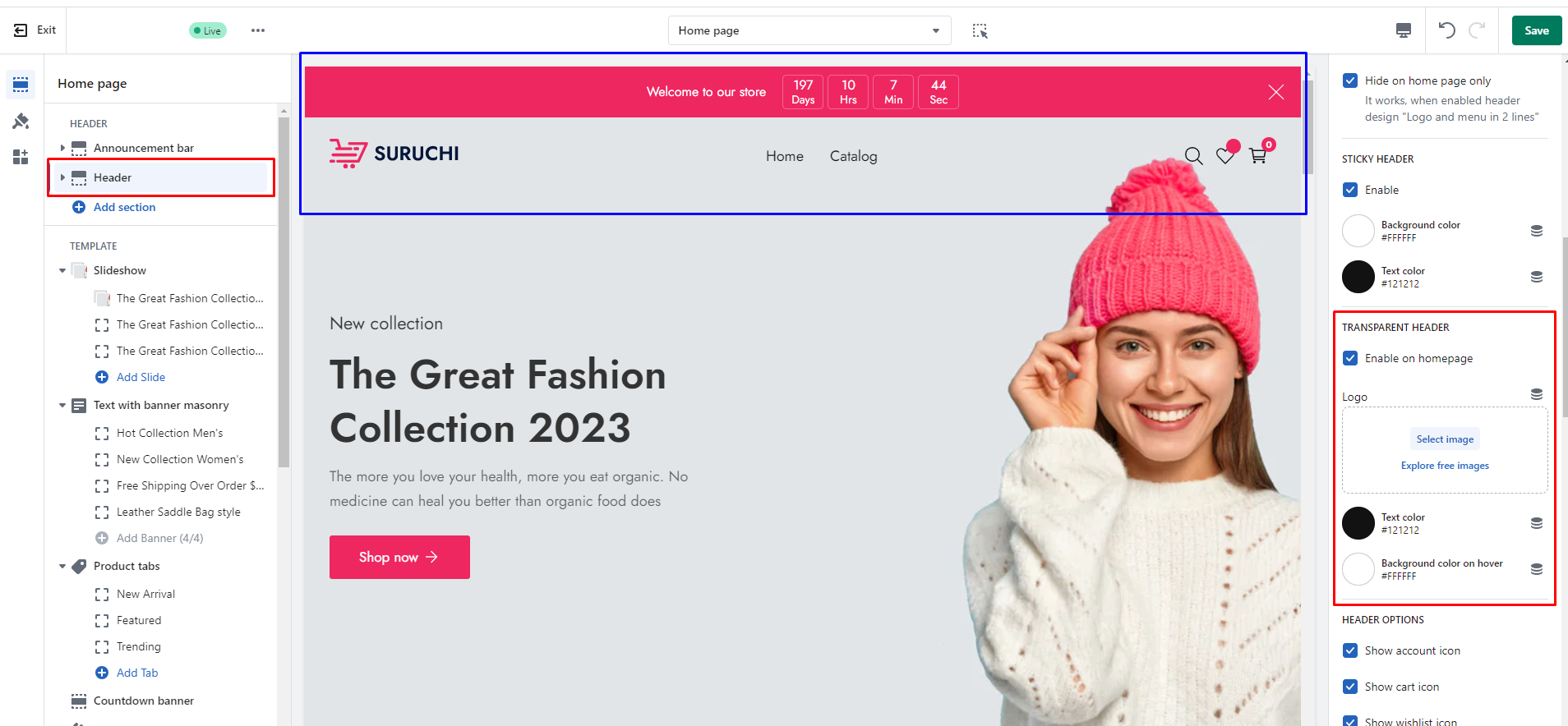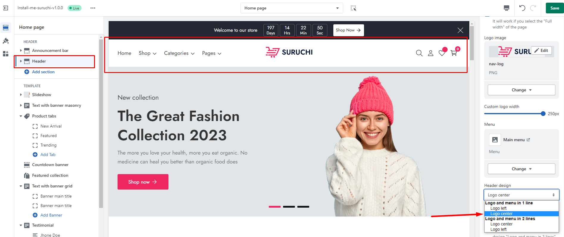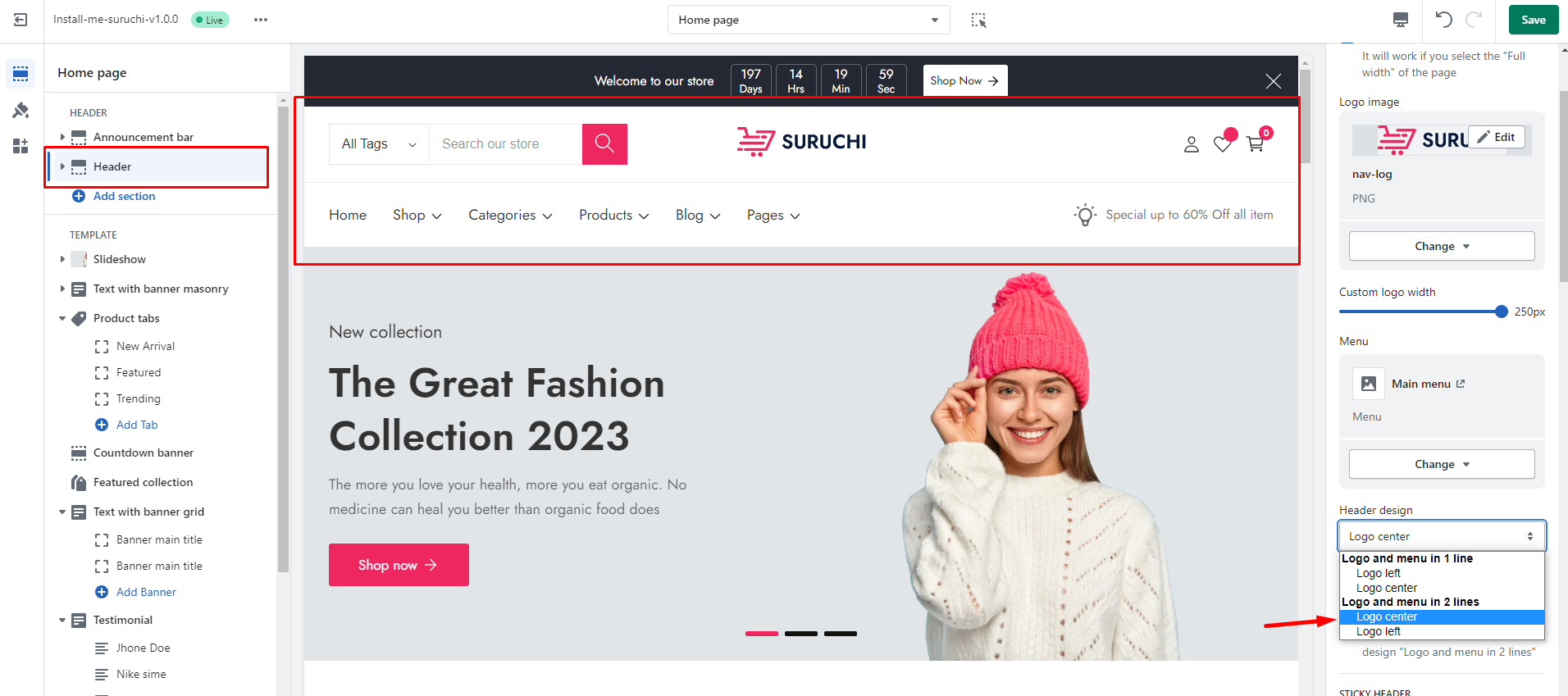 Search (Only applicable for Logo and menu in 2 lines header design)