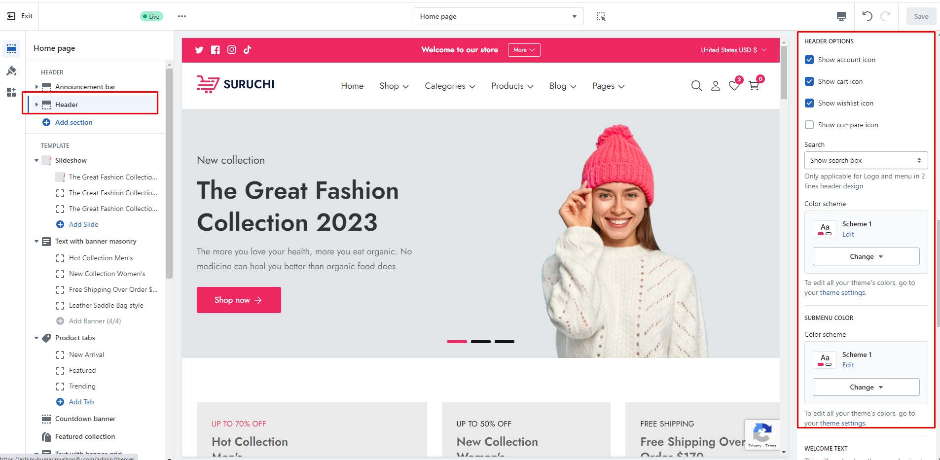 Boxed: With boxed width, page content can be displayed within the maximum width. The page width can be changed in Theme Settings > Layout.
