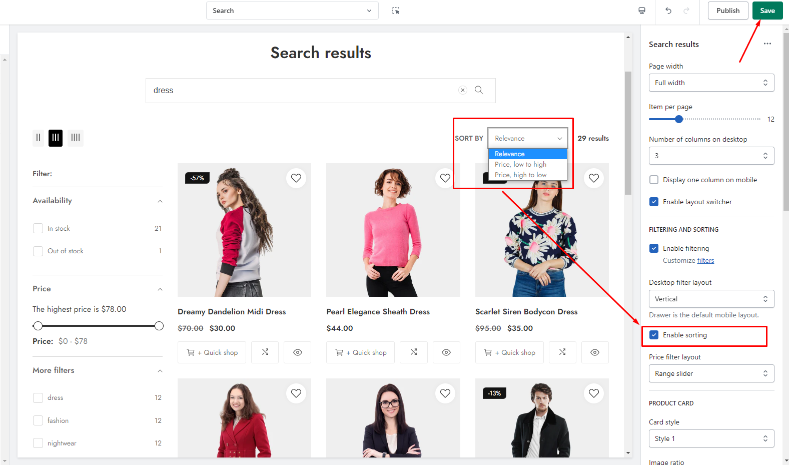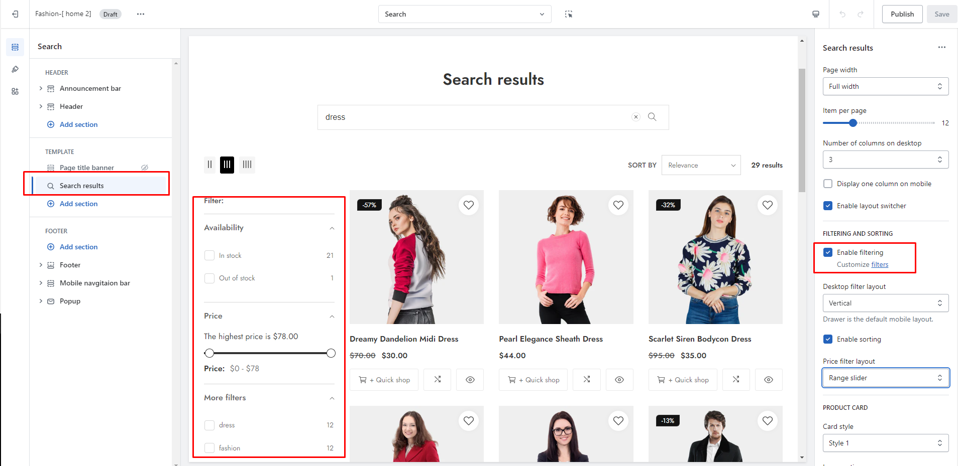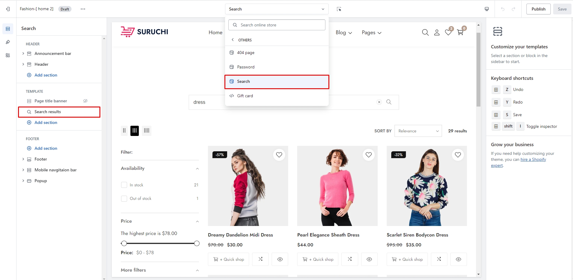 Predictive search is a feature on Shopify that suggests products, pages, blog posts, collections, and query results as you type into the search bar. It uses the words and phrases from your product catalog, as well as from past customer searches, to generate suggestions that are relevant to what you're looking for.