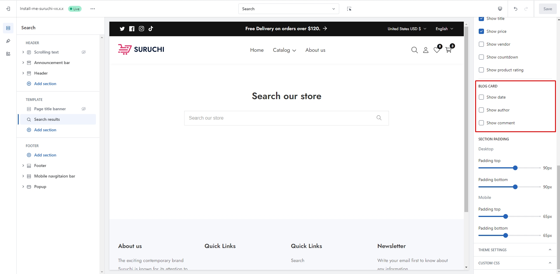 The section’s bottom inner space height is determined. From 0 to 150 px, will be incremented by 5px. It will affect the desktop.