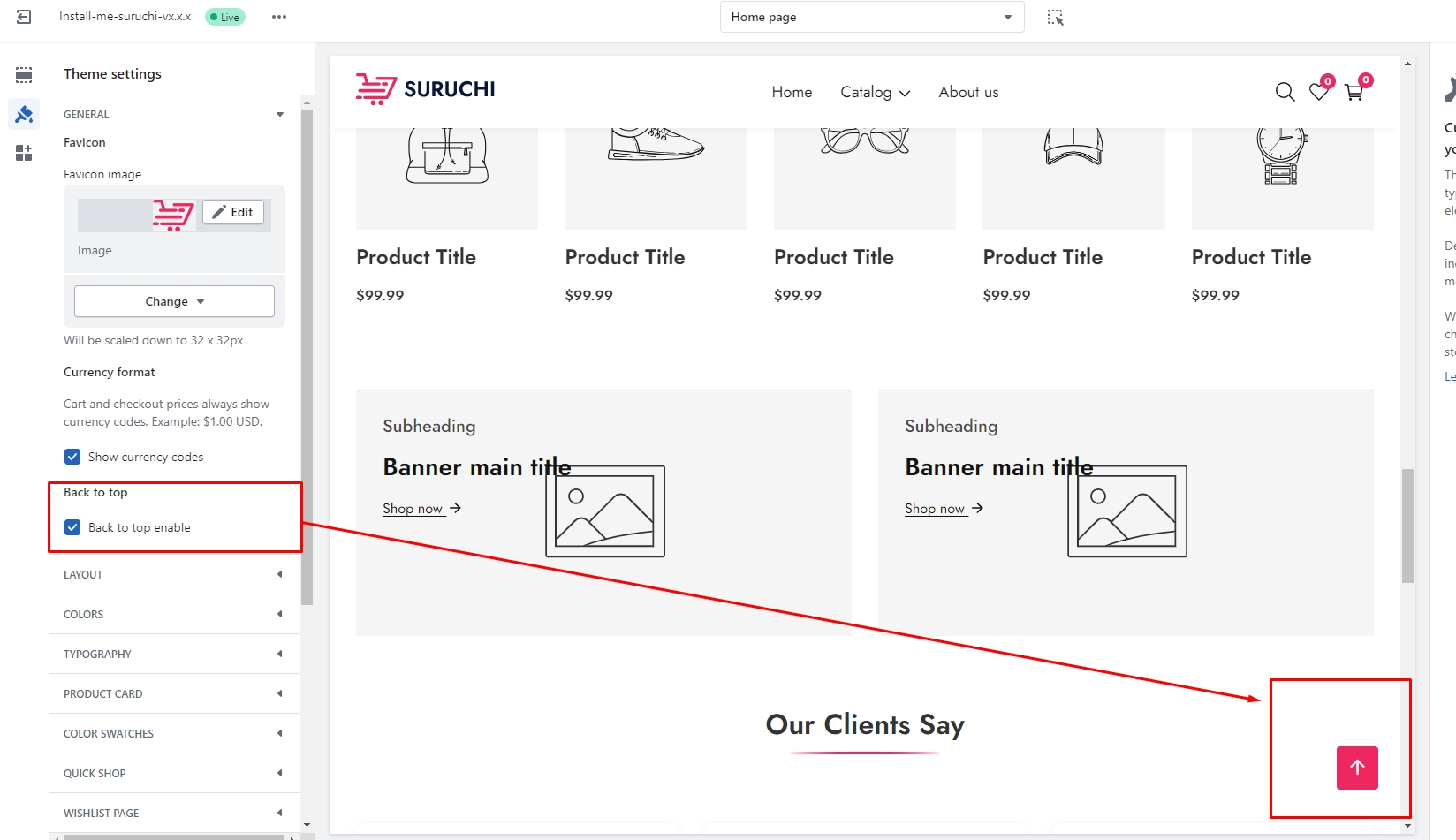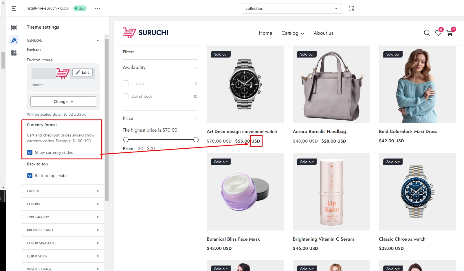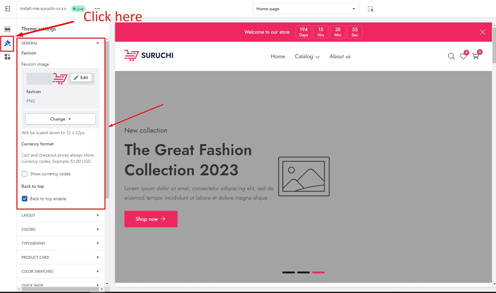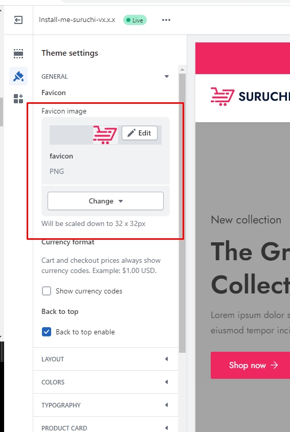 Learn how to add a favicon to your site, enable Currency format & Back to top