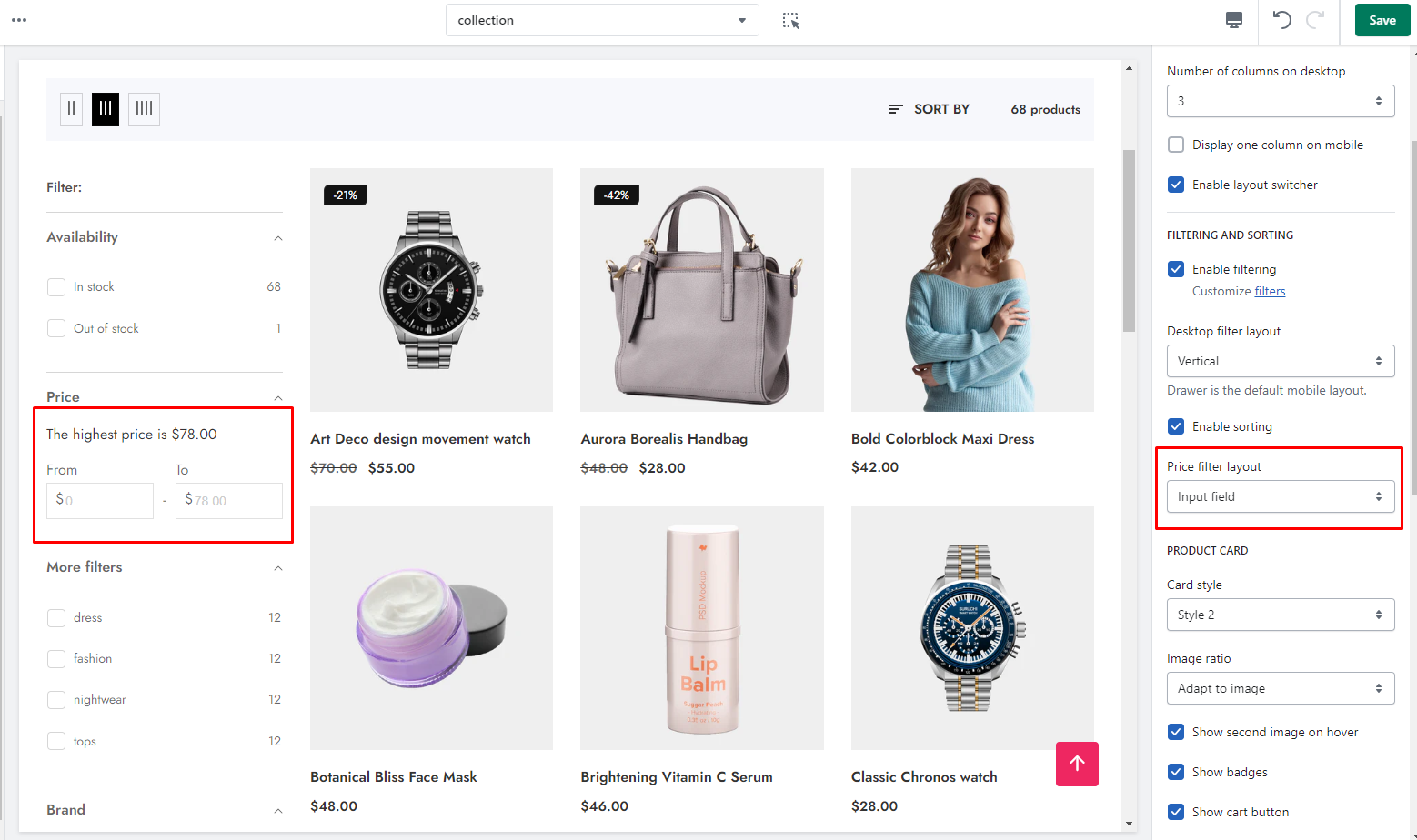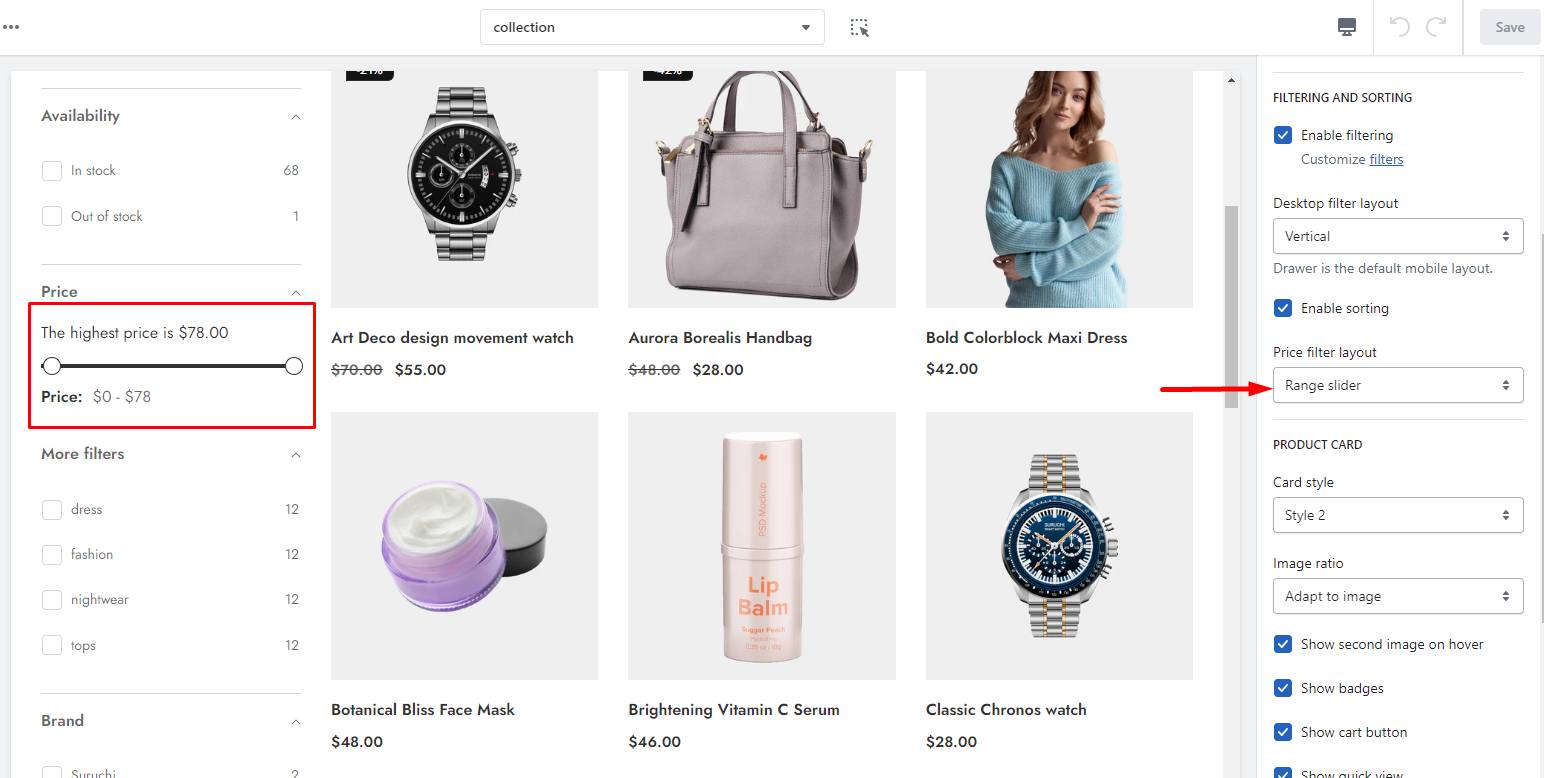 How to customize your collection product & filtering section