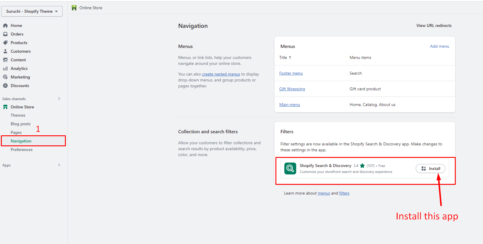 Install Shopify Search & Discovery app