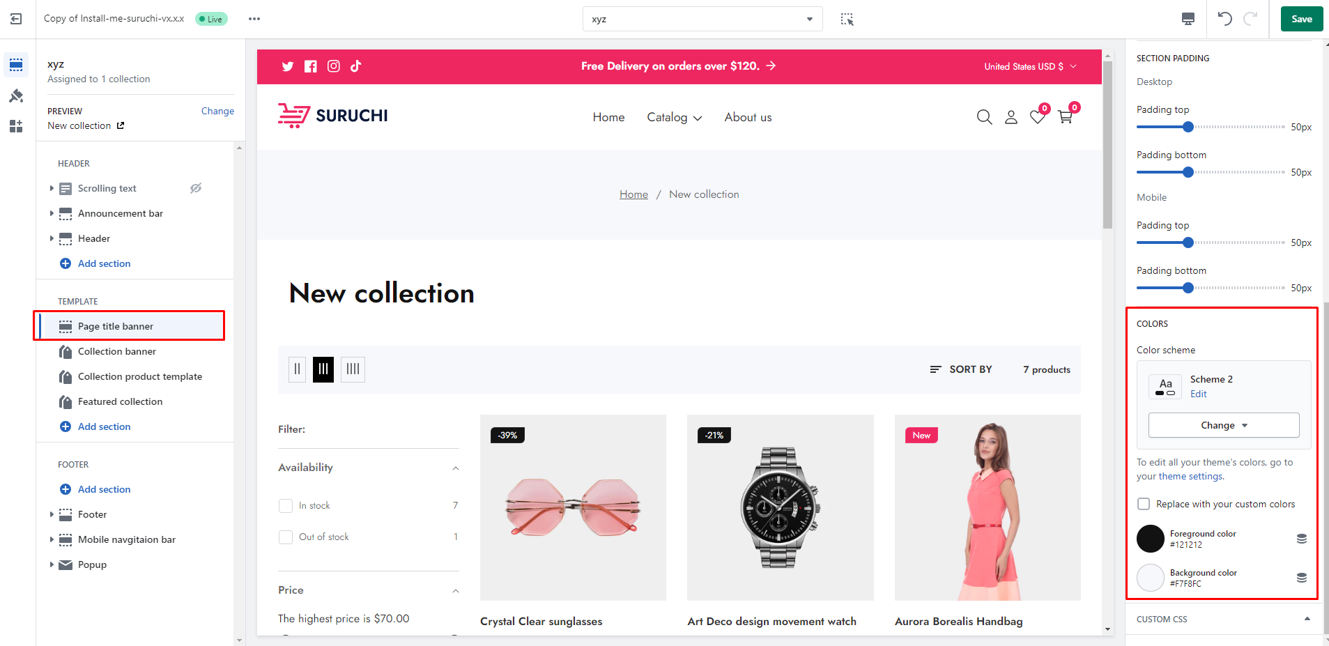 | **Show page heading**          | You can show/hide page title                                                                |